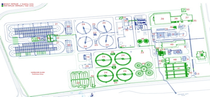Proses havuzlarının havalandırma, 3 asıl + 1 yedek şeklinde 25.000 Nm3/h kapasite ile çalışan blowerlar ve su altı difüzör sistemi ile yapılmaktadır.