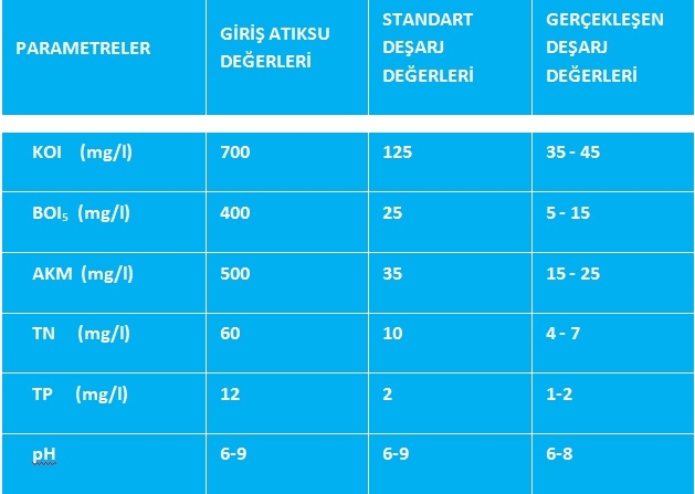 %98 verimle arıtılmış su toplam 5 km uzunluğundaki deşarj hattı ile 50 Metre derinliğinde denize verilmektedir.