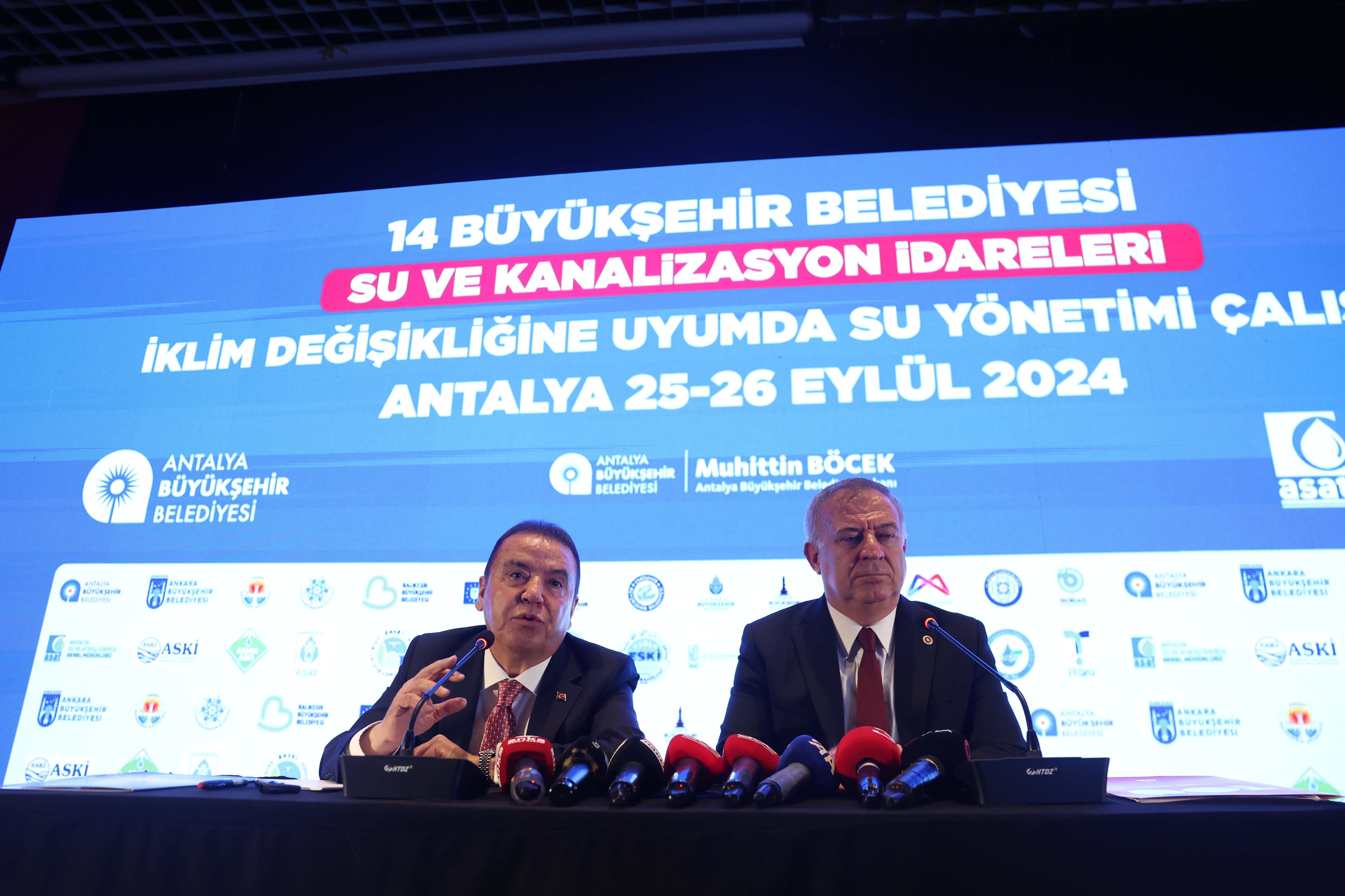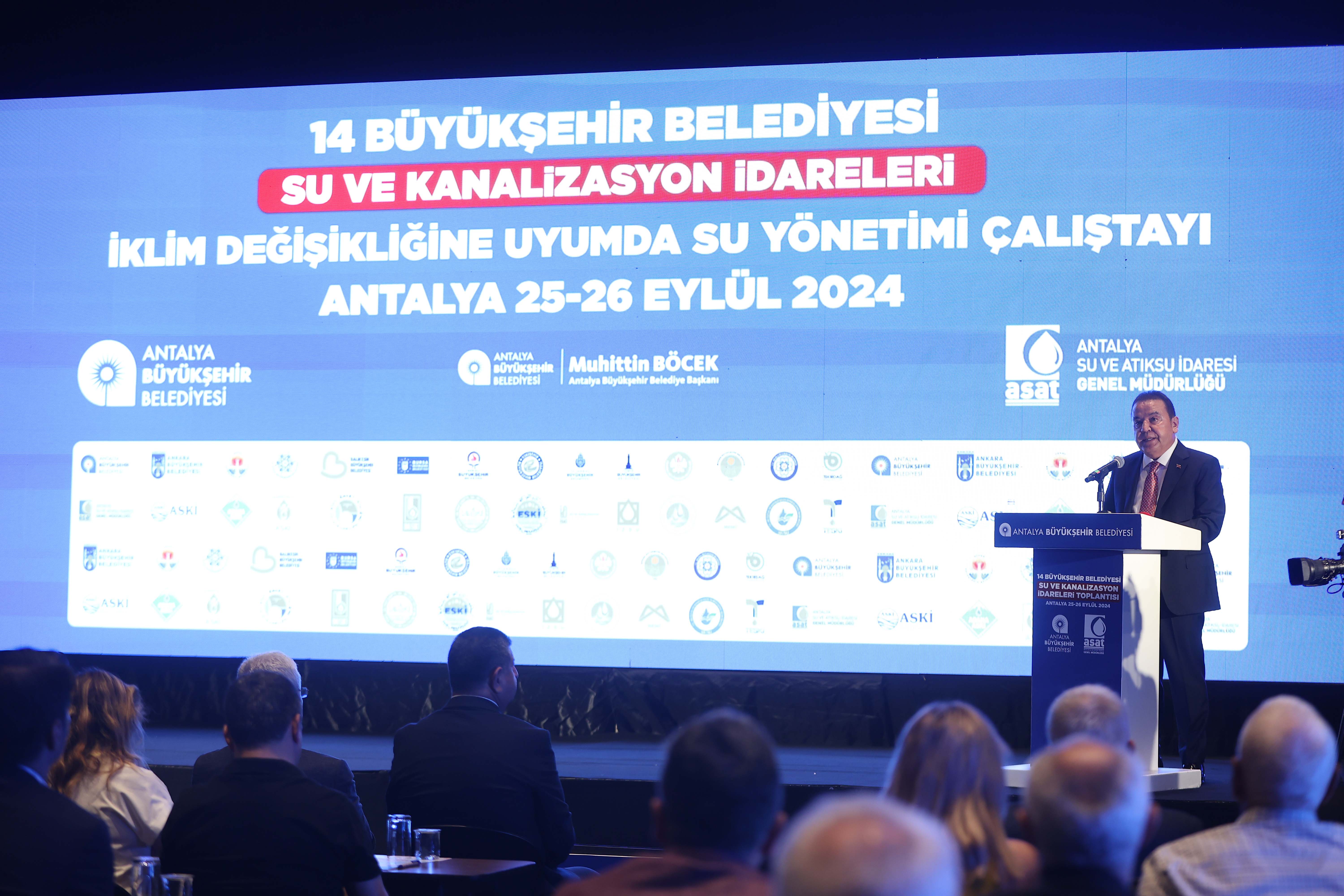 Antalya Büyükşehir Belediye Başkanı Muhittin Böcek, bu önemli toplantıyı Türkiye nüfusunun yaklaşık yarısına hizmet veren 14 büyükşehir belediyesinin su ve atıksu idarelerinde karşılaşılan sorunları değerlendirmek ve çözüm önerilerini görüşmek, karşılıklı tecrübelerden istifade etmek ve işbirliğini güçlendirmek amacıyla gerçekleştirdiklerini söyledi. Başkan Böcek, küresel iklim değişikliğine bağlı su kaynaklarının azalması, kuraklık riski, su taşkınları ve seller, su tüketim miktarının artması, su kayıp kaçakları, atıksu arıtma sistemlerinde yaşanan sorunlar ve artan maliyetler gibi nedenlerle sürdürülebilir su yönetiminin daha kritik bir önem kazandığının altını çizdi.
