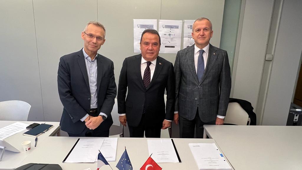 Paris’te gerçekleştirilen görüşmelerin ardından Büyükşehir Belediyesi ASAT Genel Müdürlüğü ve AFD arasında Antalya’nın geleceği için büyük önem taşıyan çevreci ve modern alt yapı projelerinde kullanılmak üzere 59.850.000 Euro bütçeli kredi ve 300 bin Euro tutarında hibe anlaşması imzaladı. Anlaşmaya Büyükşehir Belediye Başkanı Muhittin Böcek ve Fransız Kalkınma Ajansı (AFD) Tüm Asya Ülkelerinden Sorumlu Coğrafi Direktörü Cyrille Bellier imza koydu. Anlaşmayla ilgili Ağustos ayında Büyükşehir Belediye Meclisi’nden yetki alınmıştı.