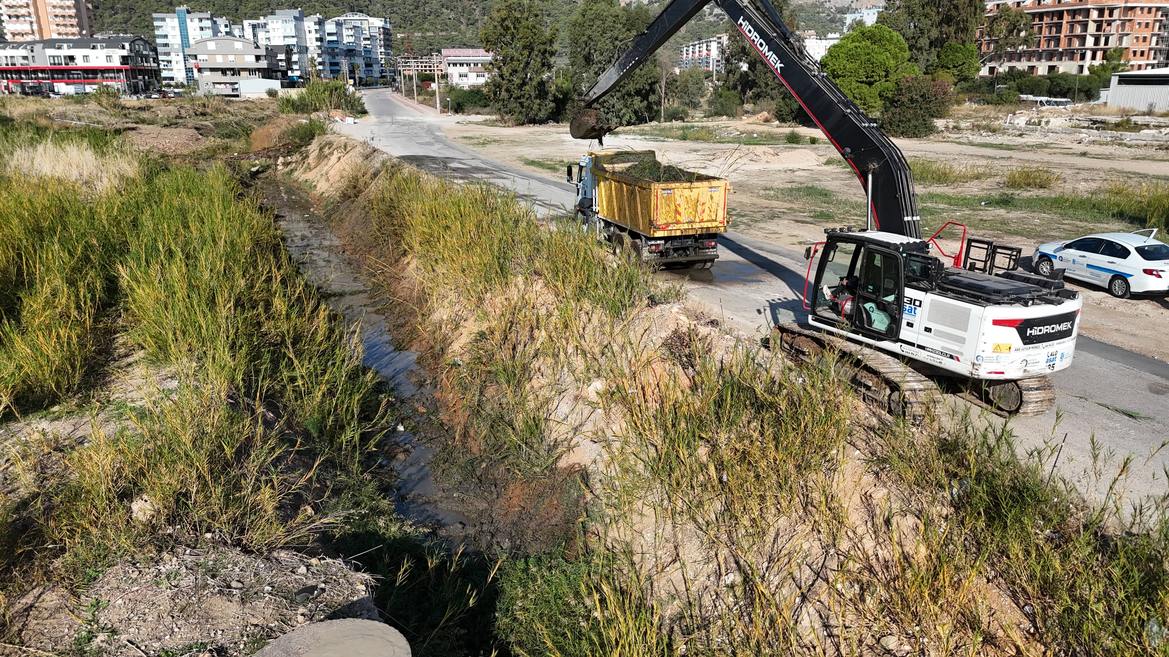 Özellikle yoğun yağış dönemlerinde yağmur sularının denize tahliyesini sağlayan açık kanallarda biriken otlar, sazlıklar, ağaç dalları, çamur ve katı atıklar iş makineleri ve budama ekipleriyle temizleniyor. Bu çalışmalarla hem kötü koku ve haşere oluşumu önleniyor hem de olası taşkın risklerine karşı önlem alınıyor.