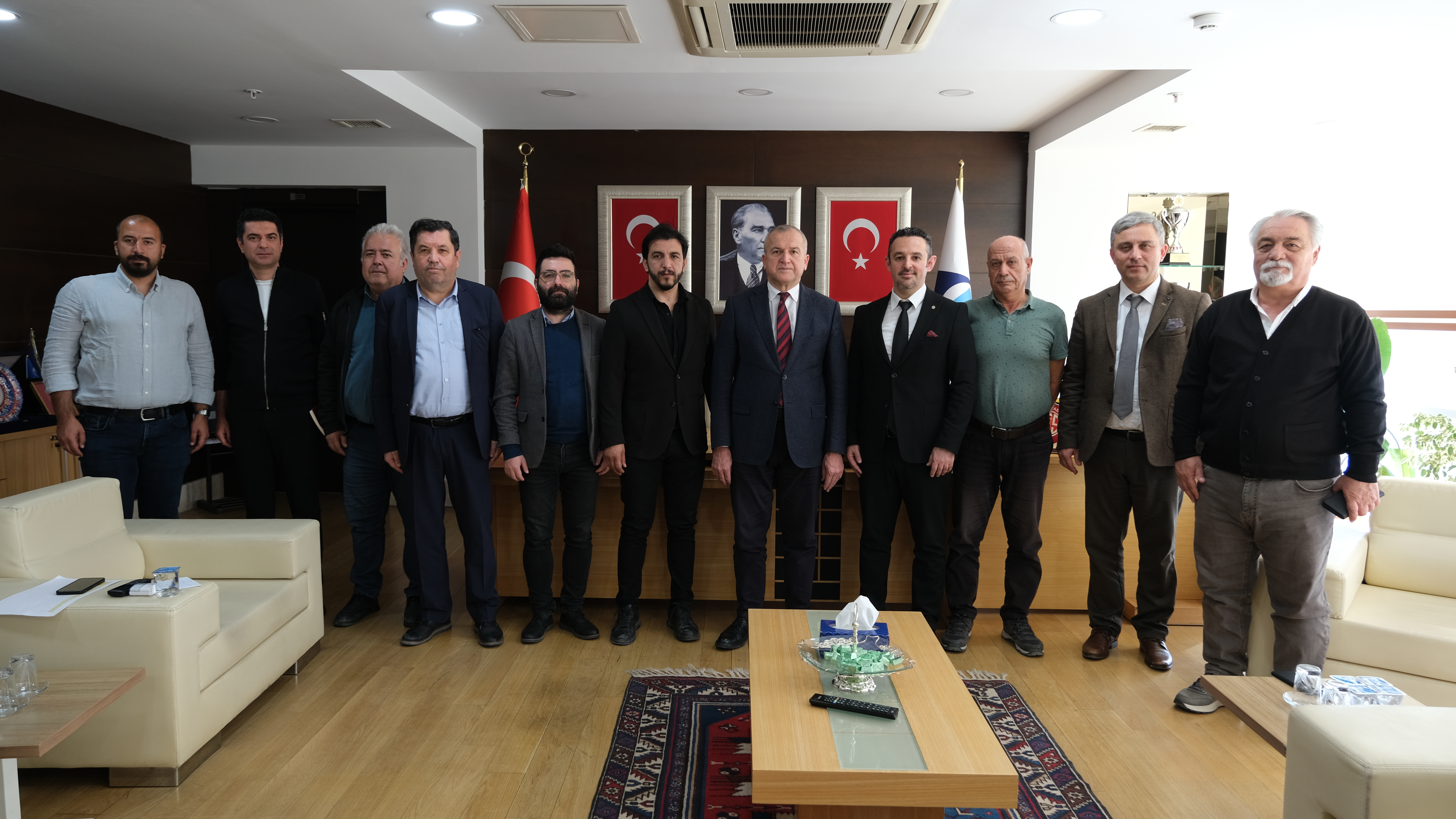 ASAT Genel Müdürü Av. İbrahim Kurt Jeoloji Mühendisleri Odası Antalya Şubesi Başkanı Mustafa Karancı ve Yönetim Kurulu Üyelerini makamında konuk etti.