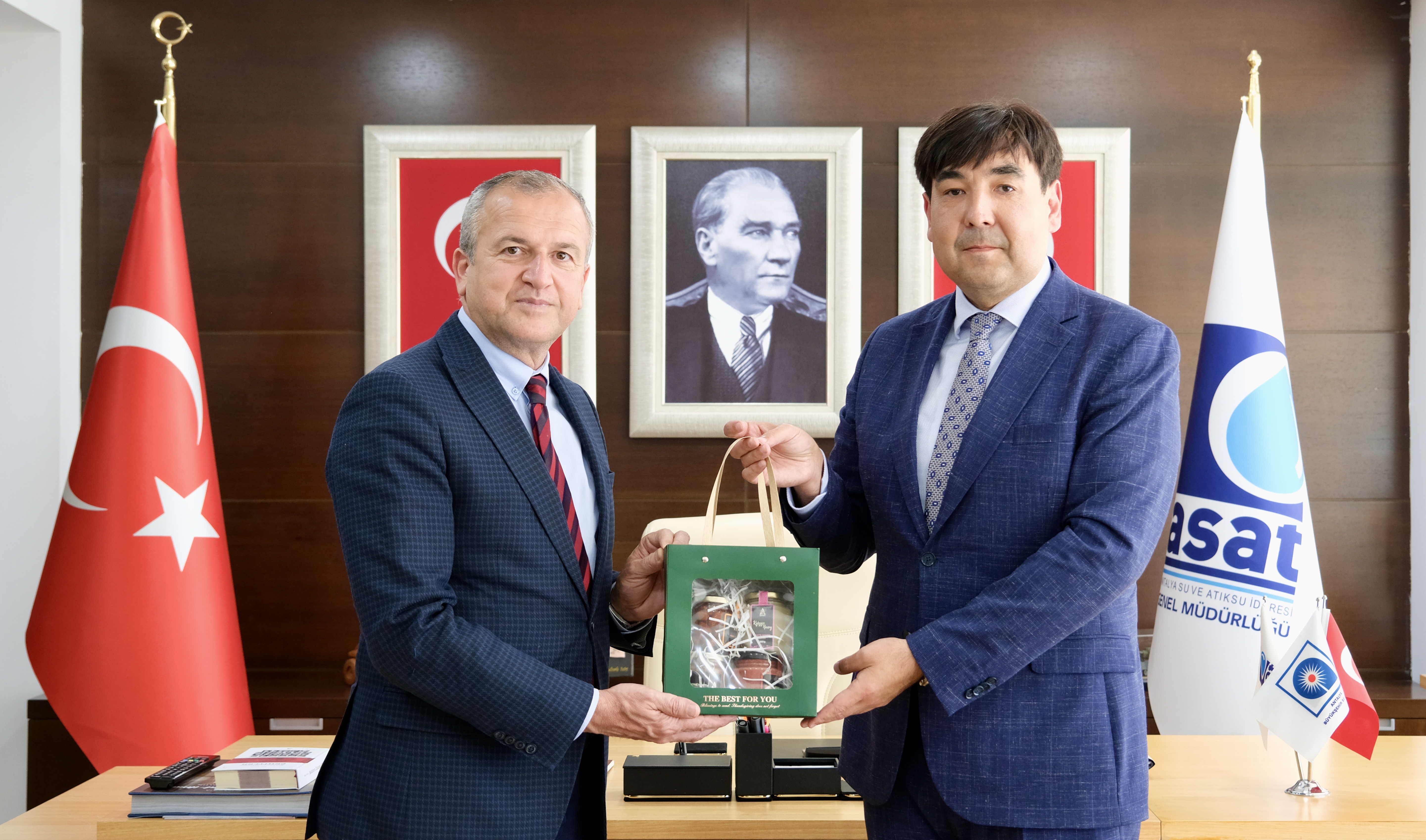Kardeş ve dost ülke Kırgızistan Cumhuriyeti’nin Antalya Başkonsolosu Rustam Koshonov, Antalya Su ve Atıksu İdaresi (ASAT) Genel Müdürü Av. İbrahim Kurt’u makamında ziyaret etti.